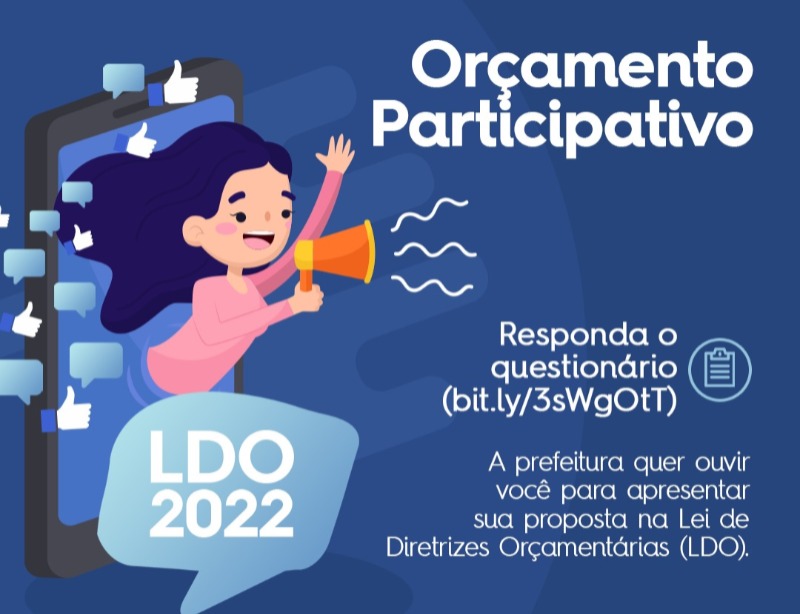 Neste primeiro momento, está aberta uma consulta popular, para que os munícipes possam indicar à Prefeitura quais são as áreas prioritárias de investimentos, além de realizar outras sugestões. A participação da população nesse processo é fundamental, além de estarmos cumprindo a determinação da Lei de Responsabilidade Fiscal. O Formulário eletrônico está disponível no site da Prefeitura, assim, nesse momento em que prezamos pela saúde do nosso povo, estamos evitando aglomerações para realização de consultas/audiências públicas, em virtude do Coronavírus – COVID 19.